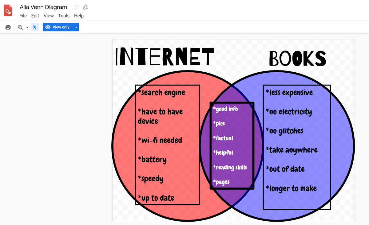 Screencastify video showing how to create a Venn Diagram for a Google Doc using drawing.The story that I am using in my example is called Fish In A Tree. Making your own Venn diagram is quite easy and it takes only just a few minutes. To start, click Insert > Shape > Shapes, and select “Oval”. Now click and drag ... From your Google Doc, select Add-ons > Lucidchart Diagrams > Insert Diagram. · Choose your Venn diagram from the list in the right-hand sidebar. Click "+."; · A ...2 answers · 1 vote: Within Google Docs, you have the option to insert a Google Drawing. It comes with the ability ...