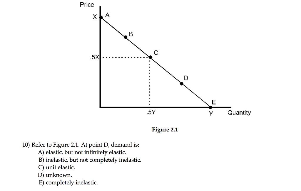 26 Dec 2017 — Refer to the above diagram. In the P3P4 price range demand is: B. relatively inelastic. The total-revenue test for elasticity. Refer to the above diagram. In the P1P2 price range demand is: A. of unit elasticity. B. relatively inelastic. C. relatively elastic. D. perfectly elastic. relatively elastic. 46. Refer to the above diagram. In the P3P4 price range demand is: A. of unit elasticity. B. relatively inelastic. C. relatively elastic. The basic formula for the price elasticity of demand coefficient is: ... Image: Refer to the diagram. ... In the P3P4 price range, demand is:. (Straight-line demand curve) Refer to the above diagram. In the P1P2 price range demand is: C. relatively elastic. Refer to the above diagram. In the P3P4 price range demand is: B. relatively inelastic. The total-revenue test for elasticity. C. does not apply to supply because price and quantity are directly related.
