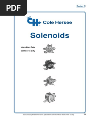 Cole Hersee Co. 0OldColonyAve ,Boston MA - 4 73 H1 2 3 1 56 4 2 1 45 3 Momentary Switch LOAD BAT + 2 3 14 24402 24V Insulated Schematic and picture same as 24400. 24401 12V Insulated Schematic and picture same as 24400. PVC coated model: see 24401-04. 24401-01 12V Grounded Latching Solenoid 12V Continuous Duty, 110A (carry only). Insulated ...