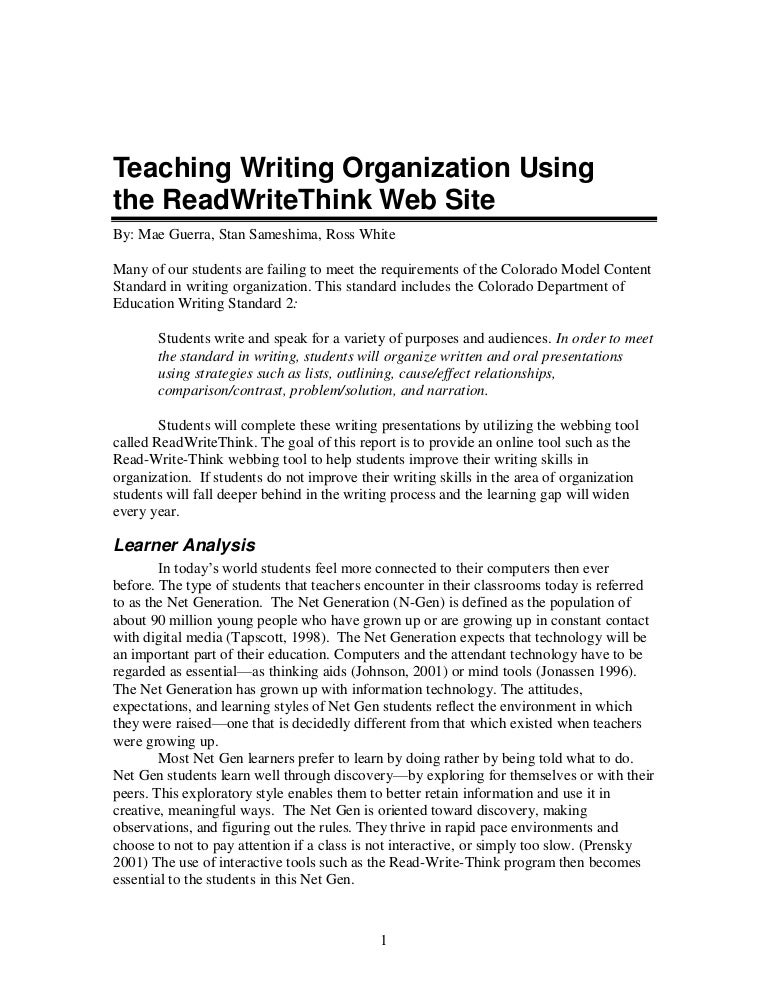The union of two sets is represented by ∪. (Don't confuse this symbol with the letter “u.”) This is a two-circle Venn diagram. The green circle is A, and the blue circle is B. The complete Venn diagram represents the union of A and B, or A ∪ B. Feel free to click on the image to try this diagram as a template. Venn Maker Read Write Diagram Think Essay. Modified: 2 nd May Print To write an essay on child abuse it is important to have a look on the standard sample essays on child abuse written by the experts. No way but this, Killing myself, to die upon a Venn Diagram Maker Read Write Think Essay kiss. If the deceased leaves no son, but a daughter ... Timeline allows students to create a graphical representation of an event or process by displaying items sequentially along a line. Timelines can be organized by time of day, date, or event, and the tool allows users to create a label with short or long descriptive text. Adding an image for each label makes a timeline more visually appealing. ReadWriteThink--Venn Diagram This site was opened in a new browser window. Open ReadWriteThink--Venn Diagram in a new window ...