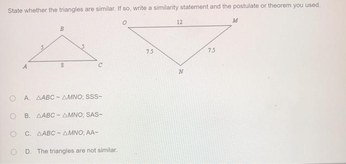 39 what similarity statement can you write relating the three triangles in the diagram below