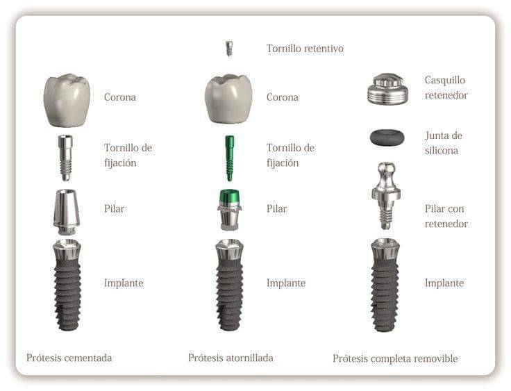 This page was published on Nov 3, 2019, modified on Jun 9, 2021 by Dr. Umanoff (Dentist) of LuxDen Dental Center Implant Post, Abutments, Prosthesis. Usually, conventional dental implants have a three-piece design. The three components are the implant post or screw, the abutment that attaches to the implant post, and the prosthesis or tooth restoration, which could be a crown, bridge, or denture.
