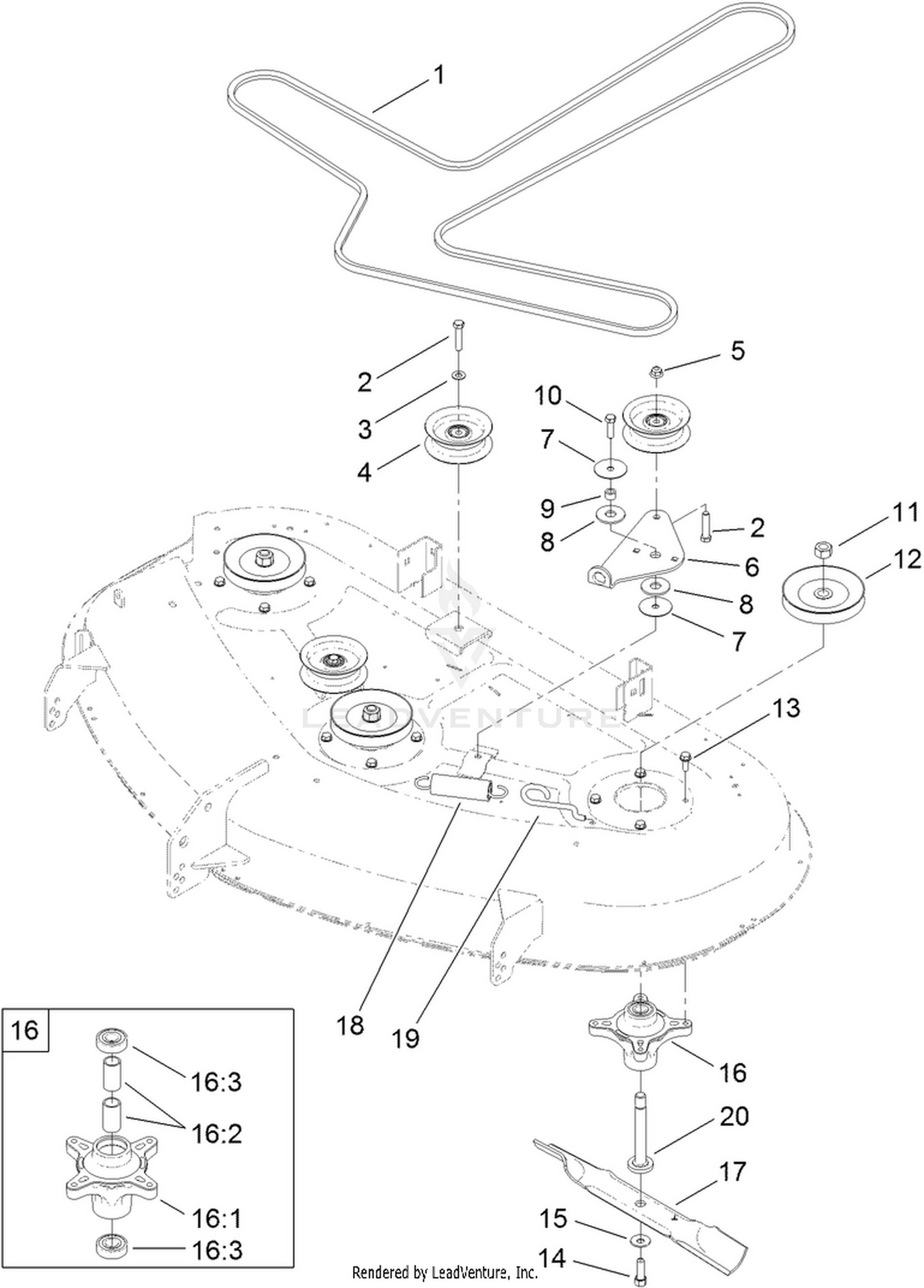 Toro 74176 Z 147 Toro 44 Z Master Zero Turn Mower Side Discharge Deck Sn 230007001 230999999 2003 Deck Spindle Assembly Parts Lookup With Diagrams Partstree