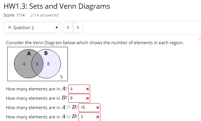 Module 7.4: Advanced Venn Diagram Problems Now we’ll consider some harder Venn Diagram problems. First, we’re going to learn about an alternative format for displaying this kind of information: a table rather than a Venn Diagram. These are impractical for 3-variable problems, but for 2-variable problems, they do give you some good information. From, the above venn diagram, number of students enrolled in at least one of the subjects : = 40 + 15 + 15 + 15 + 5 + 10 + 0. = 100. So, the number of students enrolled in at least one of the subjects is 100. Problem 4 : In a town 85% of the people speak Tamil, 40% speak English and 20% speak Hindi. Profit and loss word problems Markup and markdown word problems Decimal word problems. Word problems on fractions. Word problems on mixed fractrions. One step equation word problems. Linear inequalities word problems. Ratio and proportion word problems. Time and work word problems. Word problems on sets and venn diagrams. Word problems on ages VENN DIAGRAM WORD PROBLEMS WITH 3 CIRCLES. Let us consider the three sets A, B and C. Set A contains a elements, B contains b elements and C contains c elements. Both A and B contains w elements, B and C contains x elements, A and C contains y elements, all the three sets A, B and C contains z elements. We can use Venn diagram with 3 circles to ...