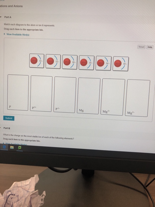 ...represents.Drag each item to the appropriate bin.You did not open hints for this part.ANSWER:Part BWhat is the charge on the most stable ion of each As you can see in the imagebelow, the atomic number for each element is written above its symbol. The mass number, written below the symbol, is...