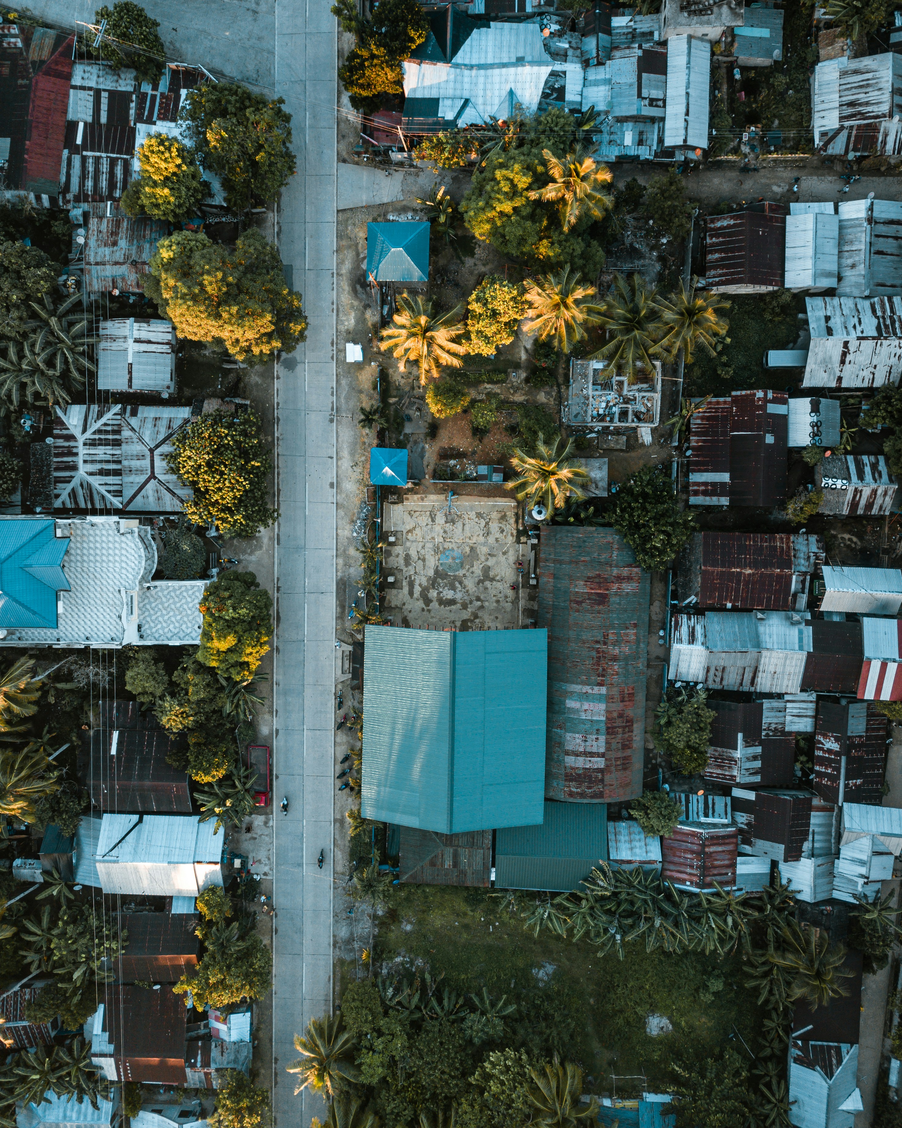 Drone shot of a small town near Cloud 9 in the Island of Siargao in the Philippines