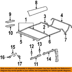 Fitment Type: Direct Replacement. UPC: Does not apply. eBay WHI Template. Jeep CHRYSLER OEM Wrangler Convertible/soft Top-Window Frame Right 5182822AE. #8 on Diagram Only-Genuine OE Factory Original Item. SELLER & PAYMENT INFORMATION. Seller name.