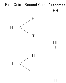 Coin & Dice Probability: Using A Tree Diagram (video ... a) Draw a tree diagram to show all the possible outcomes. b) Find the probability of getting: (i) Three tails. (ii) Exactly two heads. (iii) At least two heads. Solution: a) A tree diagram of all possible outcomes. b) The probability of getting: (i) Three tails. Let S be the sample space and A be the event of getting 3 tails. n(S) = 8; n(A) = 1 ...