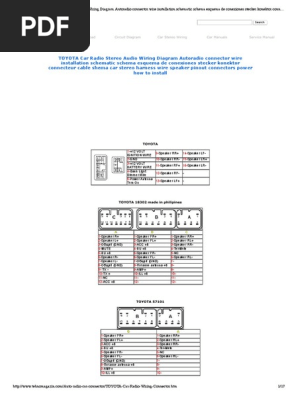 38 Toyota Fujitsu Ten Manual - Wiring Diagram Online ... 38 Toyota Fujitsu Ten Manual - Wiring Diagram Online Source Color: Toyota 86120 pinout, Location: Radio harness, white 24 pin plug, pin Displaying - of We carry a wide selection of 5 Pin and RCA adapters cable ready for any requirement you may encounter.