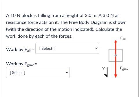 Air resistance free body diagram. File:Free body diagram gravity air resistance.svg - Wikipedia Free body diagram of a body on which only gravity and air resistance acts Source Wikipedia file File:Free_body_diagram2.png (Public Domain) Date 2021-01-13 Author Original by Skorkmaz; Derivative SVG by Lilbitmessy. Permission (Reusing this file) See below. Drawing free-body diagrams - Physics Forums Identify the forces acting on objects in each of the following situations and draw a free-body diagram (assume no air resistance present): 1. A tennis ball flies over a net. At the instant we are examining it, it is travelling horizontally. 2. An elevator is moving vertically upwards and is coming to a stop. 3. en.wikipedia.org › wiki › Free_body_diagramFree body diagram - Wikipedia A free body diagram consists of a diagrammatic representation of a single body or a subsystem of bodies isolated from its surroundings showing all the forces acting on it. In physics and engineering , a free body diagram ( FBD ; also called a force diagram ) [1] is a graphical illustration used to visualize the applied forces , moments , and ... Free Body Diagram Interactive Flashcards | Quizlet Free Body Diagram Interactive. A rightward force is applied to a crate to push it across the floor at a constant speed. Ignore air resistance. A rightward force is applied to a dresser to accelerate it to the right across the bedroom floor. Ignore air resistance.